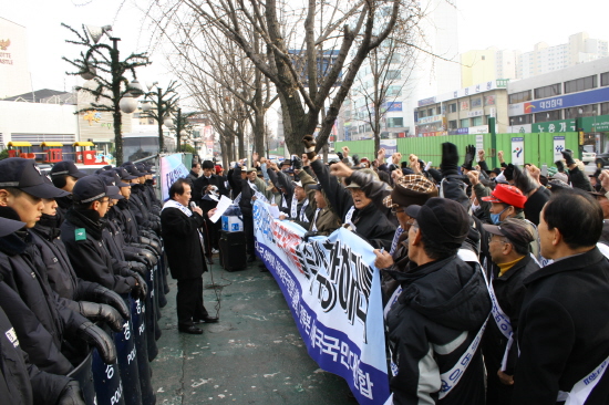 ȸ¿øµéÀº '°£Ã¸Á¤´ç ¹Î³ë´ç¿ø, Çѳª¶ó´ç º¸Á°üÀÌ À¢¸»À̳Ä''¾Ö±¹¼¼·Â ½Ç¸Á½ÃŲ Çѳª¶ó´ç ¹Ú»ì³»ÀÚ''À¢°® Àâ»õ µý³ª¶ó´ç, ¾Ö±¹´Üü Åë°îÇÑ´Ù" µîÀÇ ±¸È£¸¦ ¿ÜÄ¡¸ç Çѳª¶ó´ç °Àç¼· ´ëÇ¥ÀÇ Áï°¢ÀûÀÎ »ç°ú¸¦ Ã˱¸Çß´Ù.