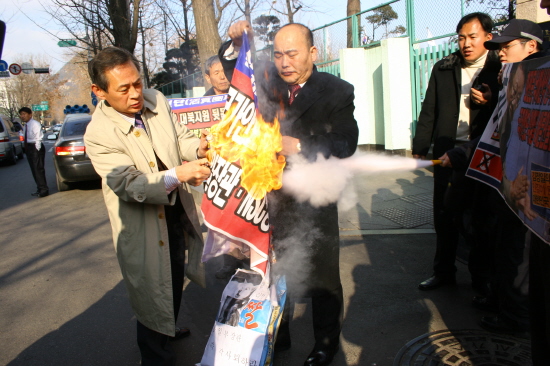 Âü¼®ÇÑ È¸¿øµéÀº ¼º¸í¼ ¹ßÇ¥ ÈÄ ´ëºÏÁö¿ø¿ë ½Ò ¸ðÇü µîÀ» ºÒÅ¿ì´Â ÆÛÆ÷¸Õ½º¸¦ ¹úÀÌ·Á ÇßÀ¸³ª Á¤ºÎû»ç¸¦ °æºñÇÏ´ø °æÂûµé¿¡ ÀÇÇØ Á¦ÁöµÆ´Ù. ȸ¿øµéÀº °æÂûµéÀÇ Á¦Áö¿¡ °·ÂÈ÷ Ç×ÀÇÇßÁö¸¸ ¾çÃøÀÇ ÀÚÁ¦·Î Å« Ãæµ¹Àº ÀϾÁö ¾Ê¾Ò´Ù. ÆÛÆ÷¸Õ½º¸¦ ¸¶¹«¸®ÇÏÁö ¸øÇÑ È¸¿øµéÀº '´ëºÏÁö¿ø Áï°¢Áß´Ü °·ÂÈ÷ ¿ä±¸ÇÑ´Ù''Ä£ºÏÀå°ü ÀÌÀçÁ¤ Áï°¢ »çÅðÇ϶ó' µîÀÇ ±¸È£¸¦ ¿ÜÄ£ ÈÄ ÀÚÁøÇØ»êÇß´Ù.