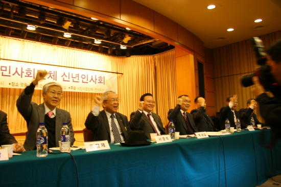 À̳¯ ½Å³âÀλçȸ¿¡´Â ´º¶óÀÌÆ® ´Üü¸¦ ºñ·Ô ±¹³» Á¤Å뺸¼ö´Üü, ¼±°Å°¨½Ã´Üü µî ¾Ö±¹´Üü ´ëºÎºÐÀÌ Âü°¡Çß´Ù. ÇÑÆí Çѳª¶ó´ç ´ë¼±ÁÖÀÚÀÎ À̸í¹Ú îñ¼¿ï½ÃÀåµµ ½Å³âÀλçȸ¿¡ Âü¼®ÇØ ½ÄÀü Âü¼®ÀÚµé°ú Àλ縦 ³ª´³´Ù.