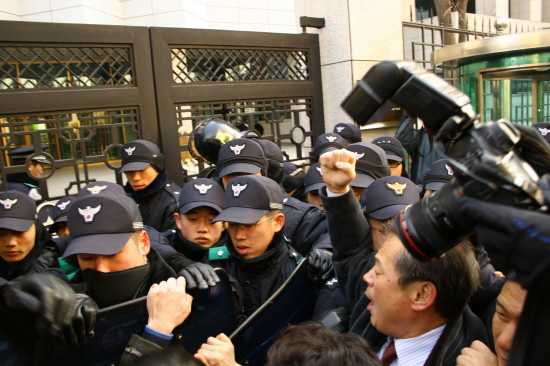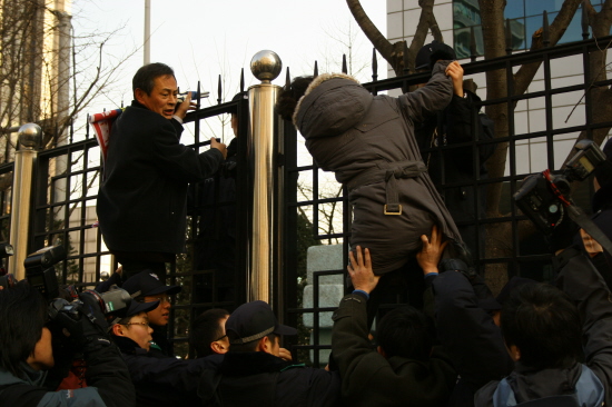 ¡ãû»ç·Î ÁøÀÔÇϱâ À§ÇØ ´ãº­¶ôÀ» ³ÑÀ¸·Á´Â Âü°¡´Üü ´ëÇ¥¿Í ³³ºÏÀÚ °¡Á·À» °æÂûÀÌ ²ø¾î³»¸®°í ÀÖ´Ù. ¨Ïkonas.net