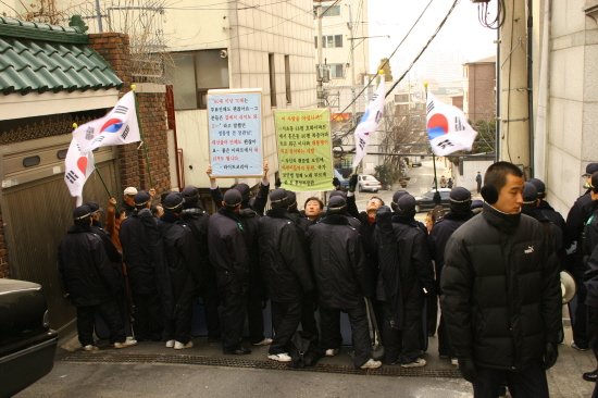 ÇÑÆí, ¹Ù¸¥´ç âÁØÀ§ ȸ¿øµéÀÌ Á¤ îñÀÇÀåÀÌ ÀÌ»çÇÑ ¾ÆÆÄÆ® ¾Õ¿¡¼ ±âÀÚȸ°ßÀ» ¿·Á ÇÏÀÚ ¹ö½º 3´ë¸¦ µ¿¿øÇÑ °æÂûÀÇ Á¦Áö¸¦ ¹Þ¾Æ 15ºÐ °¡·® ¾ÆÆÄÆ®·Î ¿Ã¶ó°¡´Â °ñ¸ñ¿¡¼ ½Ç¶ûÀ̰¡ ÀÖ¾ú´Ù. °æÂûµéÀÌ ¾ÆÆÄÆ® ±Ùó¿¡µµ °¡Áö ¸øÇÏ°Ô ÇÏÀÚ ¹Ù¸¥´ç âÁØÀ§´Â "¿ì¸®°¡ ¿¹Àü¿¡ û¿Í´ë ¾Õ¿¡¼ ³ë¹«Çö ´ëÅë·É ÅðÁøÀ» ¿ÜÃĵµ º° ´Ù¸¥ ÀÏÀÌ ¾ø¾ú´Âµ¥ ÀÌ°Ç ¾ÆÆÄÆ® ±Ùó¿¡µµ °¡Áö ¸øÇÏ°Ô ÇÏ´Â °É º¸´Ï Á¤µ¿¿µ îñÀÇÀåÀÇ ²ý¹ßÀÌ ´ëÅë·Éº¸´Ù ÁÁÀº ¸ð¾ç"À̶ó¸é¼ "±âÀÚȸ°ßµµ ¸øÇÏ°Ô ÇÏ´À³Ä"¸ç °æÂûµé¿¡°Ô Ç×ÀÇÇß´Ù.