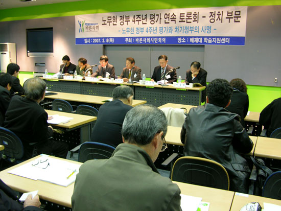 ¹ÚÈ¿Á¾ ¼¿ï´ë ±³¼ö´Â ¹Ù¸¥»çȸ½Ã¹ÎȸÀÇ(°øµ¿´ëÇ¥ À¯¼¼Èñ, ÇѾç´ë ¸í¿¹±³¼ö)°¡ 8ÀÏ ¿ÀÈÄ 2½Ã ¼¿ï Áß±¸ ¹èÁ¦ÇмúÁö¿ø¼¾ÅÍ¿¡¼ ÁÖÃÖÇÑ '³ë¹«Çö Á¤ºÎ 4ÁÖ³â Æò°¡ ¿¬¼Ó Åä·Ðȸ - Á¤Ä¡ºÎ¹®' ¹ßÁ¦¿¡¼ Âü¿©Á¤ºÎÀÇ Àϰö°¡Áö °áÇÔÀ» Áß½ÉÀ¸·Î ¹ßÇ¥¸¦ ÇÏ¸é¼ Âü¿©Á¤ºÎÀÇ Áö³ 4³âÀº ±¹°¡¿Í ±¹Á¤ÀÇ Ç°°ÝÀÌ ÇÑ ´Ü°è ¶³¾îÆ®¸° 4³â¿¡ ºÒ°úÇß´Ù¸ç ÀÌ·¸°Ô ¸»Çß´Ù.