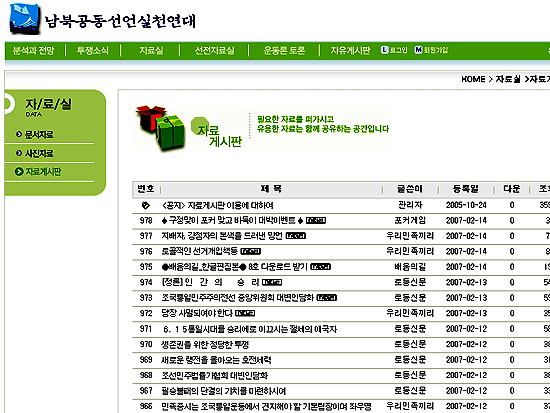 ¾Ë·ÁÁ³´Ù½ÃÇÇ ½Çõ¿¬´ë ȨÆäÀÌÁö °Ô½ÃÆÇ¿¡´Â ±èÀϼº¡¤±èÁ¤ÀÏ Âù¾ç µî ºÏÇÑ´ç±¹ÀÇ ÁÖÀåÀÌ °¡µæÇÏ´Ù. ƯÈ÷ ÀÚ·á°Ô½ÃÆÇÀº °ÅÀÇ 100% ºÏÇÑ´ç±¹ ÁÖÀåÀ¸·Î µµ¹èµÇ¾î ÀÖ´Ù. ´©±¸³ª ±ÛÀ» ¿Ã¸± ¼ö ÀÖ´Â ±¸Á¶ÀÇ °Ô½ÃÆÇÀÓ¿¡µµ À̰°Àº °Ô½Ã¹°¸¸ °¡µæÂ÷ ÀÖ´Ù´Â °ÍÀº, ½Çõ¿¬´ë ÃøÀÌ 'öÀúÇÑ °Ô½ÃÆÇ °ü¸®'¸¦ ÇØ¿ÔÀ½À» ÀǹÌÇÑ´Ù. Áï ÀÌÀû°Ô½Ã¹°À» ´Ü¼øÈ÷ ¹æÄ¡ÇÑ °ÍÀÌ ¾Æ´Ï¶ó º¸È£Çϰí ÀÖ´Ù´Â °ÍÀÌ´Ù.