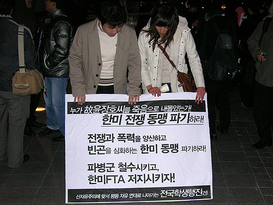 Áøº¸¼ºÇâ ´Üüµé·Î ±¸¼ºµÈ 'ÆÄº´¹Ý´ë±¹¹ÎÇൿ'(ÀÌÇÏ ±¹¹ÎÇൿ)Àº À̳¯ ¹ã ¼¿ï û°è±¤Àå¿¡¼ À± Çϻ縦 ±â¸®´Â ÃкÒÁýȸ¸¦ °®°í, Á¤ºÎ¿¡ Çѱ¹±º ö¼ö¸¦ Ã˱¸ÇÏ´Â ÇÑÆí ¹Ì±¹À» Áß½ÉÀ¸·Î ÇÑ ±¹Á¦»çȸÀÇ Å×·¯¿ÍÀÇ ÀüÀïÀ» 'ħ·«ÀüÀï'À¸·Î ºñ³Çß´Ù. À̳¯ Çà»ç¿¡´Â ¹ÎÁֳ뵿´ç, ¹ÎÁÖ»çȸ¸¦ À§ÇÑ º¯È£»ç ¸ðÀÓ(¹Îº¯), ÆòÈÀçÇⱺÀÎȸ, ÆòÈ¿©¼ºÈ¸ µîÀÇ ´ÜüµéÀÌ ÇÔ²² Çß´Ù.