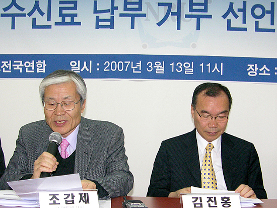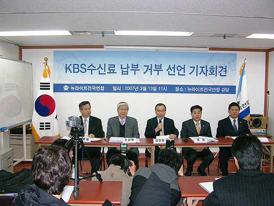 °¡Àå ¸ÕÀú ºÒÀ» ´ç±ä ÀÌ´Â ±èÁøÈ«(´º¶óÀÌÆ®Àü±¹¿¬ÇÕ »óÀÓÀÇÀå) ¸ñ»ç¿Í Á¶°©Á¦ îñ ¿ù°£Á¶¼± ´ëÇ¥(Çö Á¶°©Á¦´åÄÄ ´ëÇ¥). µÎ »ç¶÷Àº ´ÙÀ½´ÞºÎÅÍ KBS ½Ãû·á¸¦ ³»Áö ¾ÊÀ» ¹æÄ§ÀÌ´Ù. À̵éÀº 13ÀÏ ´º¶óÀÌÆ®Àü±¹¿¬ÇÕ °­´ç¿¡¼­ °¡Áø ±âÀÚȸ°ß¿¡¼­ À̰°ÀÌ ÀüÇϰí, À̸¦ ¹ü±¹¹Î¿îµ¿À¸·Î È®»ê½Ãų °ÍÀÓÀ» ½Ã»çÇß´Ù.