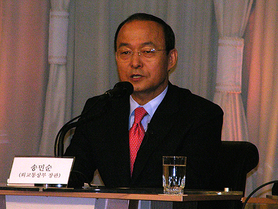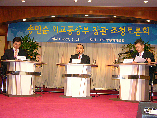 'ºÏÇÑ ÀÚ±Ø ¹ß¾ð'À¸·Î ¼¼°£ÀÇ °ü½ÉÀ» ¸ðÀ¸°í ÀÖ´Â ¼Û¹Î¼ø ¿Ü±³Åë»óºÎ Àå°üÀÌ, 'Çѱ¹¹æ¼Û±âÀÚŬ·´'ÀÌ ÁÖÃÖÇÑ Åä·Ðȸ¿¡ Âü¼®ÇØ ÀÚ½ÅÀÇ ¹ß¾ð(º»Áö 22ÀÏÀÚ °ü·Ã±â»ç ÂüÁ¶)¿¡ ´ëÇØ ÇØ¸íÇß´Ù.