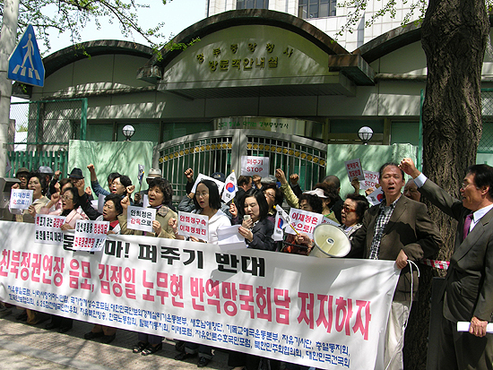 ³ª¶ó»ç¶û¾î¸Ó´Ï¿¬ÇÕ(´ëÇ¥ ±Ç¸íÈ£, ÀÌÇÏ ³ª»ç¿¬) µî ½Ã¹Î´Üü ȸ¿øµéÀº 23ÀÏ ¿ÀÈÄ ÅëÀϺΰ¡ ÀÔÁÖÇÑ ¼¿ï ¼¼Á¾·Î Á¤ºÎÁ¾ÇÕû»ç ÈĹ® ¾Õ¿¡¼ ±âÀÚȸ°ßÀ» °®°í, ³²ºÏÁ¤»óȸ´ãÀ» "¹Ý¿ª¸Á±¹È¸´ã"À¸·Î ±ÔźÇÔ°ú µ¿½Ã¿¡ Çö Á¤ºÎÀÇ ´ëºÏÁö¿øÀÌ "¹¯Áö¸¶ ½Ä ÆÛÁÖ±â"¶ó¸ç Áß´ÜÀ» Ã˱¸Çß´Ù.