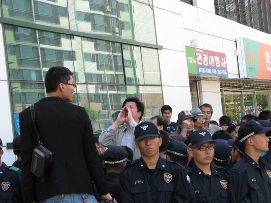 Á¦ÀÏ ¸ÕÀú µµÂøÇØ ½ÃÀ§¸¦ ±âµµÇÏ´ø ÃÖ¼º¿ë ³³ºÏÀÚ°¡Á·¸ðÀÓ ´ëÇ¥ µî ³³ºÏÀÚ °¡Á· 30¿© ¸íÀº À̳¯ ¿ÀÀü 9½Ã²² ¹®»ê¿ª Çà»çÀå ¹Û µµ·Î¿¡¼ ³³ºÏÀÚ ¼ÛȯÀ» ¿ä±¸ÇÏ¸ç ½ÃÀ§¸¦ ¹úÀÌ´Ù °æÂûÀÇ Á¦Áö¸¦ ¹Þ¾Ò´Ù.