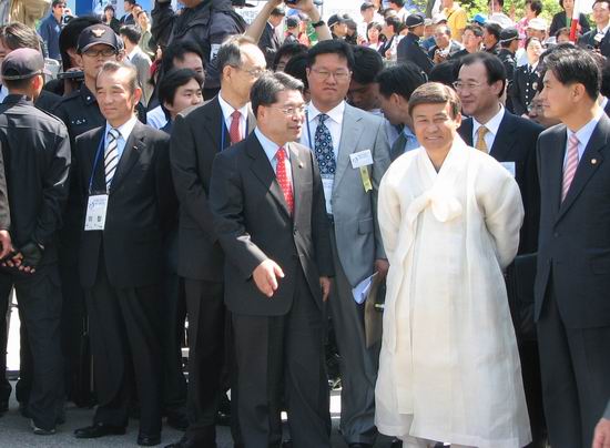 ÀÌÀçÁ¤ ÅëÀϺΠÀå°ü, ÀÌö Çѱ¹Ã¶µµ °ø»ç »çÀå, ¹é³«Ã» ¼¿ï´ë ¸í¿¹±³¼ö, ±è¿ø¿õ ¿¿ì´ç ¼Ò¼Ó ±¹È¸ÀÇ¿øµî »ç½Ç»ó ÀÌ ³²ºÏöµµ ¿¬°áÀ̶ó´Â À̺¥Æ®ÀÇ ½Ç¼¼µéÀ̾ú´Ù. ƯÈ÷ ±è¿ø¿õ ÀÇ¿øÀº Ç㿬 µÎ·ç¸¶±â¸¦ °ÉÄ£ ü ¿¬½Å ÆÄ¾È´ë¼ÒÇÏ´Â ¸ð½ÀÀÌ, '¹Ý°¡¿î »ç¶÷ÀÌ ¿À¸é ¹ö¼±¹ß·Î ¸¶Áß ³ª°£´Ù.'´Â ¿¾ ¼Ó´ãÀÌ ¹«»öÇÏÁö ¾Ê¾Ò´Ù.