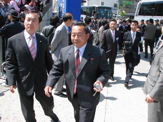 °ðÀÌ¾î ºÏÃø ´ëÇ¥µéÀÌ °æÂû ¿ÀÅä¹ÙÀÌÀÇ ¼±µµ¸¦ ¹ÞÀ¸¸ç µµÂøÇß°í, ºÏÃø ´ëÇ¥µéÀÌ ±äÀåµÇ¸é¼µµ ´ç´çÇÑ Ç¥Á¤À¸·Î ¹ö½º¿¡¼ ³»·Á¿Ô´Ù. ¹è°æÀ½¾ÇÀ¸·Î ±ò¸° Ã럴ëÀÇ ÀåÁßÇÑ ¿¬ÁÖ°¡ ´õ¿í´õ ±×µéÀ» µ¸º¸ÀÌ°Ô ¸¸µé¾ú´Ù. ºÏÃø´ëÇ¥µéÀÌ °³¼±ÇϵíÀÌ Ã¶µµ¿¬°á ±â³äÇà»çÀå ¹«´ë·Î µé¾î¿ÀÀÚ À̹ø¿¡´Â '¹Ý°©½À´Ï´Ù'¸¦ ¿¬ÁÖÇÏ´Â ¿©¼º °íÀû´ë ´ë¿øµé°ú Çà»çÀåÀÇ Á¼®À» ¸Å¿î ÃÊû ÀλçµéÀÌ ±×µéÀ» ¸ÂÀÌÇϰí ÀÖ¾ú´Ù.