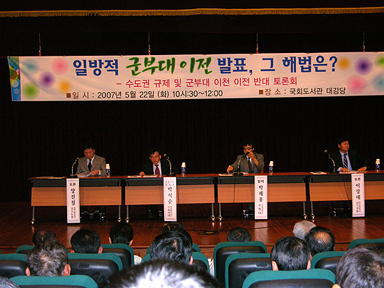 ÀÌ Áö¿ª ±¹È¸ÀÇ¿øÀÎ Çѳª¶ó´ç À̱ÔÅà ÀÇ¿ø ÁÖÃÖ·Î 22ÀÏ ±¹È¸µµ¼­°ü ´ë°­´ç¿¡¼­ ¿­¸° ¡º¼öµµ±Ç ±ÔÁ¦ ¹× ±ººÎ´ë ÀÌõ ÀÌÀü ¹Ý´ë Åä·Ðȸ¡»¿¡¼­, Á¶º´µ· ÀÌõ½ÃÀåÀº ¡°¿ì¸® Áö¿ª¿¡ ±ººÎ´ë°¡ µé¾î¿À´Â °ÍÀ» ¹Ý´ëÇÏ´Â ÀÌÀ¯´Â, ¾Èº¸¸¦ Áß¿ä½Ã ¾ÈÇØ¼­°¡ ¾Æ´Ï´Ù¡±¶ó¸ç ¡°Æ¯Àü»ç´Â 30ºÐ ³»¿¡ °øÇ׿¡ °¡¾ßÇϱ⠶§¹®¿¡ °æ±â ÀÌõº¸´Ù´Â Áö±Ý ÀÖ´Â °÷(¼­¿ï ¼ÛÆÄ)ÀÌ ÃÖÀû À§Ä¡¡±¶ó°í ÁÖÀåÇß´Ù.