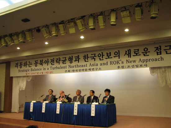 Çѱ¹Àü·«¹®Á¦¿¬±¸¼Ò(¼ÒÀå ±èÈñ»ó)´Â 1ÀÏ ¿ÀÈÄ 2½Ã È£ÅÚ Ä³ÇÇÅ»(½Å¶ó·ë)¿¡¼­ "°Ýµ¿ÇÏ´Â µ¿ºÏ¾ÆÀü·«±ÕÇü°ú Çѱ¹¾Èº¸ÀÇ »õ·Î¿î Á¢±Ù(Strategic Balance in Turbulent Northeast Asia and ROK's New Approach)"À» ÁÖÁ¦·Î ±¹Á¦½ÉÆ÷Áö¿òÀ» °³ÃÖÇß´Ù.