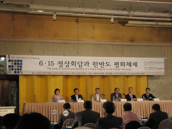 À̳¯ '6.15Á¤»óȸ´ã°ú Çѹݵµ ÆòÈüÁ¦' Á¦¸ñÀ¸·Î ¿¸° ÇмúȸÀÇ´Â À̺ÀÁ¶ ÅëÀÏ¿¬±¸¿øÀåÀÇ "6.15 °øµ¿¼±¾ðÀÌ¾ß ¸»·Î ºÐ´Ü°ú ³ÃÀüÀ» ±Øº¹ÇÑ °á´Ü" À̶ó´Â °³È¸»ç·Î ½ÃÀÛµÆÀ¸¸ç, ½Å¾ð»ó Â÷°üÀº À̺ÀÁ¶ ¿øÀå¿¡ À̾î Ãà»ç¸¦ ³¶µ¶Çß´Ù.
