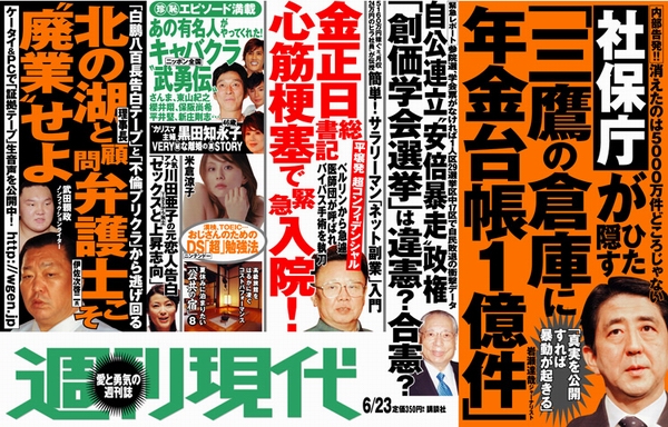 8ÀÏ, ÀϺ» ½Ã»çÁÖ°£Áö 'ÁÖ°£Çö´ë(ñÎÊÊúÞÓÛ) 6.23ÀÏÀÚ´Â ±èÁ¤ÀÏÀÌ ½É±Ù°æ»öÀ¸·Î ÀÔ¿ø ¼ö¼úÇß´Ù´Â ³»¿ëÀÇ ±â»ç¸¦ º¸µµÇß´Ù.