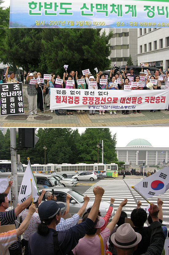 °ø¸í¼±°Å°¨½Ã±¹¹Î¿îµ¿¿¬ÇÕÀº ¡°2007³â ´ëÅë·É¼±°Å´Â ´ëÇѹα¹ ¸í¿îÀÌ °É¸° ÃÖÈÄÀÇ °áÀüÀåÀ¸·Î, ¸ðµç ´É·Â°ú ¿ª·®À» ´Ù µ¿¿øÇØ Ä£ºÏ¹Ý¿ªÁ¤±Ç ¿¬ÀåÀ½¸ð¸¦ ÀúÁö¡¤ºÐ¼âÇÏ°í ¾Ö±¹Á¤±ÇÀ» âÃâÇØ¾ß ÇÑ´Ù¡±¸ç ¡°Ã¶ÀúÇÑ °ËÁõ°ú °øÁ¤ÇÑ °æ¼±¸¸ÀÌ ´ë¼±ÇʽÂÀÇ Ã¸°æ¡±À̶ó°í ÁÖÀåÇß´Ù.