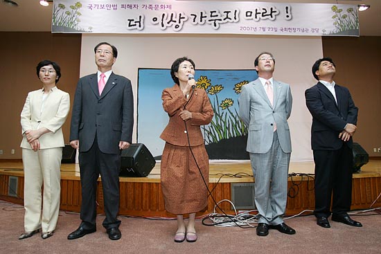 Âü°¡ÀÚµéÀº Àú¸¶´Ù ¡°±¹°¡º¸¾È¹ýÀº ¡®°¨±â¡¯¿Í °°´Ù(¸ðµç »ç¶÷µé¿¡°Ô °É¸± ¼ö ÀÖ°í, ¼ö¸¹Àº »ç¶÷À» ¾ÆÇÁ°Ô ÇÏ°í ½ÉÁö¾î Á×°ÔÇß´Ù°í ÁÖÀå)¡±´Â µî ±¹º¸¹ý ÆóÁö¸¦ ¿ª¼³Çß´Ù.