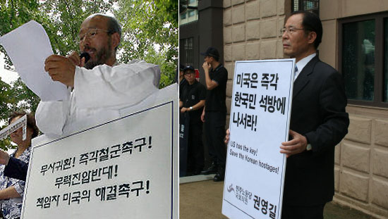 ÇÑ ¸ñ»ç´Â ±âÀÚȸ°ß¿¡¼­ "¹«·ÂÁø¾ÐÀº °áÄÚ ¾È µÈ´Ù. ÀÎÁú»çÅÂÀÇ º»ÁúÀû Ã¥ÀÓÀÌ ¹Ì±¹¿¡ ÀÖÀ½ÀÌ ÀÚ¸íÇÑ ¸¸Å­, ¹Ì±¹ÀÌ Á÷Á¢ ³ª¼­¼­ ÇØ°áÇØ¾ß ÇÑ´Ù"¸ç ¹Ì±¹ÀÇ Àû±ØÀûÀÎ ´ëÀÀÀ» Ã˱¸Çß´Ù. ¶Ç Á¤ºÎ¿¡ ´ëÇØ¼­´Â À̶óÅ© ÆÄº´À» Áï½Ã ö¼öÇϰí ÀÚÁÖÀûÀÎ ¿Ü±³¸¦ ÆîÄ¡¶ó°í ¿ä±¸Çß´Ù. À̾î ÇÑ ¸ñ»ç´Â ¹Ì±¹ ´ë»ç°ü ¾ÕÀ¸·Î ÀÚ¸®¸¦ ¿Å°Ü '¹Ì±¹ÀÇ Àû±ØÀû ÇൿÀ» Ã˱¸Çϰí ÇǶøÇѱ¹ÀεéÀÇ ¹«»ç±ÍȯÀ» ±â¿øÇÑ´Ù'´Â ÇÇÄÏÀ» ¸ñ¿¡ °É°í 1ÀÎ ½ÃÀ§¸¦ ÁøÇàÇß´Ù.