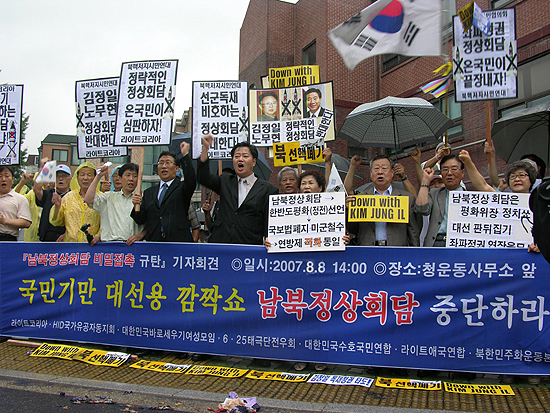 ¶óÀÌÆ®ÄÚ¸®¾Æ(°øµ¿´ëÇ¥ °½Â±Ô¡¤ºÀÅÂÈ«)¸¦ ºñ·ÔÇØ ´ëÇѹα¹¹Ù·Î¼¼¿ì±â¿©¼º¸ðÀÓ(´ë¼¼¸ð, ´ëÇ¥ ÀÓÀºÁÖ)¡¤¶óÀÌÆ®¾Ö±¹¿¬ÇÕ(´ëÇ¥ ±è¸í±â)¡¤ºÏÇѹÎÁÖȿº»ºÎ(´ëÇ¥ ¹Ú»óÇÐ)¡¤ºÏÇÙÀúÁö½Ã¹Î¿¬´ë(´ëÇ¥ ¹ÚÂù¼º) µîÀº 8ÀÏ ¿ÀÈÄ Ã»¿Í´ë Àαٿ¡¼ °Å¸® ±âÀÚȸ°ßÀ» °®°í, ¡°³²ºÏÁ¤»óȸ´ãÀº Æòȸ¦ À§ÀåÇÑ ¿¬¹æÁ¦ À½¸ð¡±¶ó¸ç Áß´ÜÀ» Ã˱¸Çß´Ù.