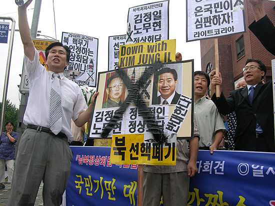 ¼º¸íÀº °è¼ÓÇØ¼ ¡°´ëÇѹα¹ ¼öÈ£¸¦ À§ÇØ ÀÌÁ¦´Â ±¹¹ÎÀÌ ÀúÇ×±ÇÀ» ¹ßµ¿ÇÏ¿© Á÷Á¢ ³ª¼¾ß ÇÒ ¶§¡±¶ó¸ç ¡°ÀÚÀ¯ÅëÀϾֱ¹¼¼·ÂÀÌ ÃÑ ´Ü°áÇØ ¡®ÆòÈ¡¯¸¦ °¡ÀåÇÏ°í ¸íºÐ¾øÀÌ ÁøÇàµÇ´Â ³²ºÏÁ¤»óȸ´ãÀ» ÀúÁöÇÏ°í ¿¬¹æÁ¦ ÀûÈ ÅëÀϼ¼·ÂµéÀÇ Çå¹ýÆÄ±« ÇàÀ§¸¦ ´ÜÈ£È÷ ÀÀ¡ÇÏÀÚ¡±°í ºÎ¿¬Çß´Ù.
