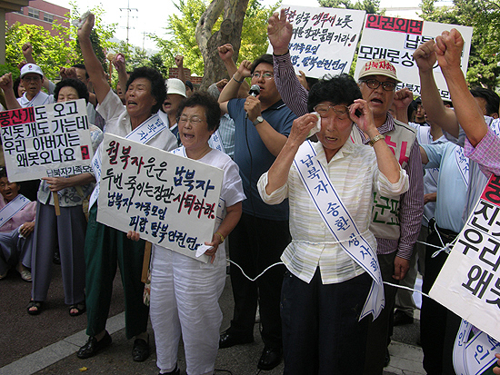 °¡Á·µéÀº ¡°Á×À½ÀÇ »ç¼±À» ³Ñ¾î¿Â ±Íȯ ³³ºÏÀÚ¿Í, »ç¶ûÇÏ´Â ³²Æí°ú ¾ÆµéÀ» »©¾Ñ±ää ¼ö½Ê³âÀÇ ¼¼¿ùÀ» ´«¹°·Î »ì¾Æ¿Â °í·ÉÀÇ ÇҸӴϵéÀ» Çü»ç°í¹ßÇÏ´Â ÆÐ·û¡¤¸ô¿°Ä¡ Àå°ü ÀÌÀçÁ¤Àº Áï°¢ ¹°·¯³ª¶ó¡±°í ¸ñ¼Ò¸®¸¦ ³ô¿´´Ù.