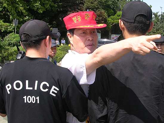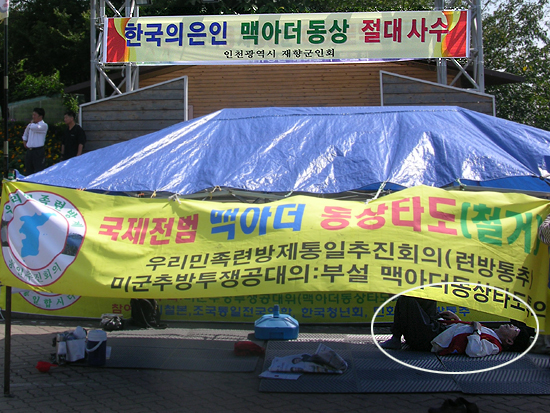 À̳¯ ¼öÈ£Áø¿µ Âü°¡ÀÚµéÀº °ú°Ý½ÃÀ§·Î È帥 Áö³ 2005³â 9¿ù 11ÀÏ ¸Æ¾Æ´õµ¿»óö°Å Áýȸ¸¦ ȸ»óÇϸç, Àü¡¤Àǰæµé¿¡°Ô "¿Ö ³ÊÈñµé ´« ¾¥½Å XµéÀ» º¸È£ÇØ ÁÖ´À³Ä"°í ºÒ¸¸À» Åä·ÎÇϱ⵵ Çß´Ù.(konas)