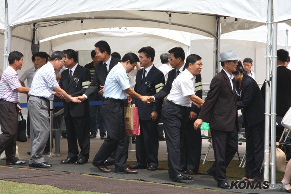 19ÀÏ ¼¿ï±¤Àå¿¡ ¸¶·ÃµÈ ͺ ±è´ëÁß Àü ´ëÅë·É °ø½ÄºÐÇâ¼Ò¿¡´Â Á¶¹®Çϱâ À§ÇÑ ½Ã¹ÎµéÀÇ Çà·ÄÀÌ À̾îÁö°í ÀÖ¾ú´Ù. ¿ÀÈÄ 1½Ã²², ¼¿ï±¤ÀåÀÇ ¸ð½ÀÀº Á¶¹®À» Çϱâ À§ÇØ 2~300¿© ¸íÀÇ ½Ã¹ÎµéÀÌ ÁÙÀ» ¼¼ ´ë±âÇϰí ÀÖ¾úÀ¸¸ç, À̵éÀº ºñ±³Àû Æò¿ÂÇÑ »óÅ¿¡¼ Á¶¹®À» ±â´Ù¸®°í ÀÖ¾ú´Ù. Á¶¹®Àº 10~20¿© ¸íÀÇ ½Ã¹ÎµéÀÌ »çȸÀÚÀÇ ¾È³»¿¡ µû¶ó °øµ¿ Çåȸ¦ ÇÏ´Â ½ÄÀ¸·Î ÁøÇàµÆ´Ù.
