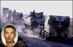 ¡ã Äí¿þÀÌÆ®¿¡¼­ À̶óÅ© ¾Æ¸£ºô±îÁö 1115KmÀÇ ´ëÀåÁ¤¿¡ ³ª¼± ÀÚÀÌÅ÷ºÎ´ë°¡ ¹æÅº´É·ÂÀÌ °­È­µÈ Æ®·¹ÀÏ·¯¿¡ K-200 Àå°©Â÷¸¦ ½Æ°í À̶óÅ© Áß¿øÀ» Áö³ª°í ÀÖ´Ù.