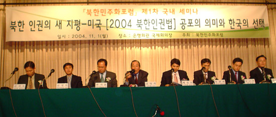 'ºÏÇÑÀαǹý °øÆ÷ÀÇ ÀÇ¹Ì¿Í Çѱ¹ÀÇ ¼±ÅÃ'À̶ó´Â ÁÖÁ¦·Î ¿¸° À̳¯ ¼¼¹Ì³ª¿¡¼ ÀÌ Æ÷·³ÀÇ »óÀÓ°í¹®À» ¸Ã°í ÀÖ´Â Àü ºÏÇÑ ³ëµ¿´ç ºñ¼ ȲÀ忱¾¾´Â ±âÁ¶¿¬¼³À» ÅëÇØ "¹Ì±¹ÀÌ ¹ßÈ¿½ÃŲ 2004³âµµ ºÏÇÑÀαǹýÀº ºÏÇÑ ÀιÎÀ» °¢¼º½ÃŰ´Â µ¥ ¸·´ëÇÑ ¿µÇâ·ÂÀ» ¹ÌÄ¥ °ÍÀÌ¸ç ±º»çÀû¤ý°æÁ¦Àû ¾Ð·ÂÀ» °¡ÇÏ´Â °Íº¸´Ù ¸î ¹è³ª Å« È¿°ú°¡ ÀÖÀ» À§´ëÇÑ °áÁ¤"À̶ó¸ç "ÀÌ ¹ýÀº ºÏÇѰú Ä£ÇÑ °ü°è¸¦ °¡Áö°í °áŹÇÑ ¼¼·Â¿¡ ´ëÇØ¼´Â Ä¡¸íÀû Ÿ°ÝÀÌ µÉ °Í"À̶ó°í ¹àÇôºÏÇÑÀαǹýÀÌ Ä£ºÏ¼¼·Â¿¡ °áÁ¤ÀûÀ¸·Î ºÒ¸®ÇÏ°Ô ÀÛ¿ëÇÒ °ÍÀÓÀ» ÁÖÀåÇß´Ù.