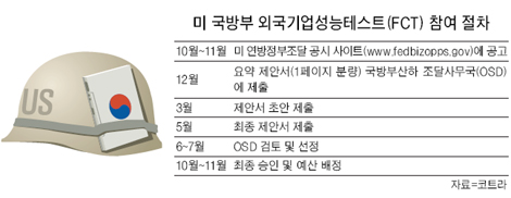 ¡ß ¹Ì±¹ ¹æ»êǰ ½ÃÀå ¾î¶»°Ô ¶Õ³ª=KOTRA ·ùÁ¾Çå ½ÃÀå°³¹ßÆÀÀåÀº "ǰÁú¿¡ ÀÚ½ÅÀÌ ÀÖ´Ù¸é ¹Ì ±¹¹æºÎÀÇ '¿Ü±¹±â¾÷ ¼º´ÉÅ×½ºÆ® ÇÁ·Î±×·¥(FCT)'À» ³ë·Áº¼ ¸¸ÇÏ´Ù"°í ¸»Çß´Ù. FCT´Â ±â¼ú °æÀï·ÂÀÌ ÀÖ´Â ¿Ü±¹ Á¦Ç°À» °ñ¶ó ¹Ì±¹ Á¦Ç°°ú µ¿µîÇÑ Á¶°ÇÀ¸·Î ½ÇÇèÇÑ´Ù. FCT¸¦ Åë°úÇÑ ¾÷üÀÇ 67%°¡·®ÀÌ ¹Ì ±¹¹æºÎ¿Í ±¸¸Å °è¾àÀ» ü°áÇß´Ù. ¹Ì ±¹¹æºÎ´Â Áö³ÇØ SKC°¡ ¸¸µç ¸®Æ¬Æú¸®¸ÓÀüÁö 120¸¸´Þ·¯¾îÄ¡¸¦ ÀÌ ÀýÂ÷¸¦ °ÅÃÄ ½ÃÇè ±¸¸ÅÇϱâ·Î °áÁ¤Çß°í, »ï¼ºÅ»·¹½ºÀÇ º®°ÉÀÌ ¸ð´ÏÅÍ¿Í ÄھƺíÀÇ À§¼º³«ÇÏ»ê À¯µµ½Ã½ºÅÛ, dz»êÀÇ ÅºÈ¯µµ ÀÌ FCT¸¦ ÁøÇàÁßÀÌ´Ù.(joins.comÁ¦°ø)