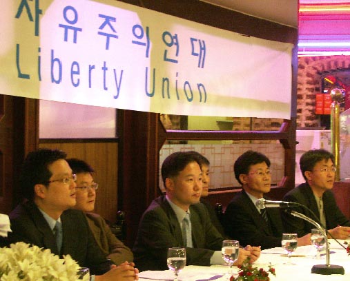 ¿ìÆÄ ÀüÇâ 386 ¿îµ¿±Ç°ú 386 ºñ¿îµ¿±Ç Ãâ½Å °¢°è Àü¹®°¡µéÀÌ Âü¿©ÇÑ ¢¥ÀÚÀ¯ÁÖÀÇ¿¬´ë¢¥(´ëÇ¥ ½ÅÁöÈ£ ¼°´ë °âÀÓ±³¼ö)°¡ 22ÀÏ ¿ÀÀü 11½Ã ¼¿ï Áß±¸ Á¤µ¿ ¼¼½Ç·¹½ºÅä¶û¿¡¼ ±âÀÚȸ°ßÀ» ÅëÇØ °ø½Ä Ãâ¹üÀ» ¼±¾ðÇß´Ù.