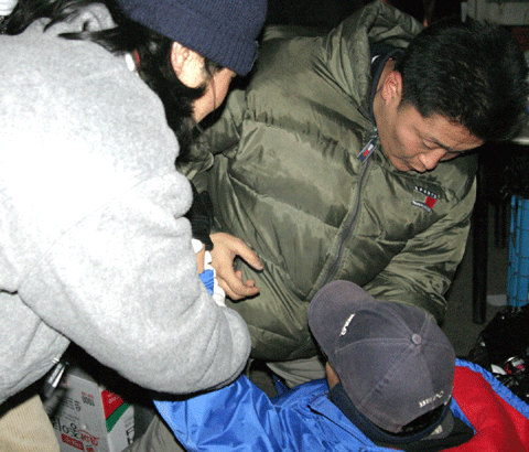 ÀÌ °úÁ¤¿¡¼­ ±¹º¸¹ýÆóÁö±¹¹Î¿¬´ë ¼Ò¼Ó ȸ¿øÀ¸·Î º¸ÀÌ´Â ÀÏ´ÜÀÇ Ã»³âµéÀº µÐ±â¸¦ »ç¿ëÇØ ¹«ÇÑÀüÁø ȸ¿øµé¿¡ Áý´Ü¸°Ä¡¸¦ °¡Çß°í, ¹«ÇÑÀüÁø ȸ¿ø 5¸íÀÌ »óÇØ¸¦ ÀÔ¾ú´Ù.