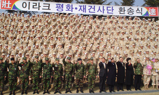 Áö³ 6°³¿ù°£ÀÇ ÆÄº´ÀÓ¹«¸¦ ¼º°øÀûÀ¸·Î ¸¶Ä¡°í º¹±ÍÇÏ´Â ÀÚÀÌÅ÷ ºÎ´ë 1ÁøÀÇ µÚ¸¦ À̾î, À̶óÅ© ÆòÈÁ¤Âø°ú Àç°Ç Áö¿ø ÀÓ¹«¸¦ ¼öÇàÇÏ°Ô µÉ ÀÚÀÌÅ÷¡¤´ÙÀ̸¸ ºÎ´ë 2Áø ȯ¼Û½ÄÀÌ 24ÀÏ ¿ÀÈÄ 2½Ã À±±¤¿õ ±¹¹æºÎ Àå°üÀ» ºñ·ÔÇÑ ±¹È¸ ±¹¹æÀ§¿ø°ú ±º °íÀ§ °ü°èÀÚ, ÀçÇⱺÀÎȸ ÀÓ¿ø°ú ÆÄº´ À庴 °¡Á· ¹× Ä£Áö µî 7,300¿©¸íÀÌ Âü¼®ÇÑ °¡¿îµ¥ °æ±âµµ ±¤ÁÖ Æ¯Àü±³À°´Ü¿¡¼ °ÅÇàµÇ¾ú´Ù.