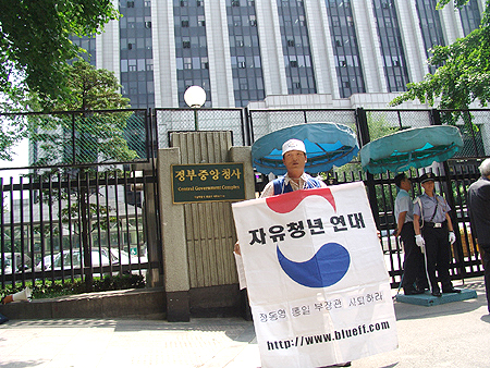 ÀÚÀ¯Ã»³â¿¬´ë ÃÖ¿ëÈ£ ´ëÇ¥´Â Áö³´Þ 31ÀϺÎÅÍ ¼¿ï ¼¼Á¾·Î Á¤ºÎÁ¾ÇÕû»ç ¾Õ¿¡¼ 1ÀÎ ½ÃÀ§¸¦ °®°í, "ºÏÇÑ¿¡ ²ø·Á¸¸ ´Ù´Ï´Â ³²ºÏ ´ç±¹È¸´ã°ú 20¸¸ Åæ ´ëºÏ ºñ·áÁö¿øÀ» Áï°¢ Áß´ÜÇϰí 6.15 Á¤ºÎ´ëÇ¥´ÜÀÇ ¹æºÏÀ» öȸÇ϶ó"°í Ã˱¸Çß´Ù.
