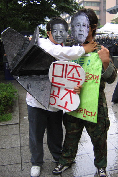 ÇÑÆí, À̳¯ ³² ¹Ú»ç Ã߸ð ±âµµÈ¸¿¡ ¾Õ¼ ¿ÀÀü 11½Ã °°Àº Àå¼Ò¿¡¼´Â À̹ø ¹æºÏÀ¸·Î ¹°ÀǸ¦ ºúÀº ¼ÛÈ¿¿ø ÇÑÃÑ·Ã ÀÇÀåÀ» ºñ·ÔÇÑ 6.15°øµ¿¼±¾ð½Çõû³âÇлý¿¬´ë, ¹ÎÁֳ뵿´ç û³âÀ§¿øÈ¸ µî ¹Ý¹Ì´Üü 30¿©¸íÀÇ ÇлýµéÀÌ 'ÇѹÌÁ¤»óȸ´ã¿¡ ´ëÇÑ °¢°èû³âÇлý ±âÀÚȸ°ß'À» °®°í Çѹ̵¿¸ÍºÐ¼â, ¹ÎÁ·°øÁ¶½ÇÇö µîÀ» ¿ÜÃÆ´Ù. À̵éÀº ¹ÎÁ·°øÁ¶ ÆÖ¸»À» µç ³ë¹«Çö´ëÅë·ÉÀÌ ½ºÅÚ½º±â ¸ðÇüÀ» µç ºÎ½Ã ´ëÅë·ÉÀÇ ¸ñÀ» Á¶¸£´Â ÆÛÆ÷¸Õ½º¸¦ ÁøÇàÇϱ⵵ Çß´Ù.