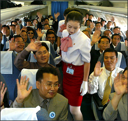 | ¡ã ºÐ´ÜÀÌÈÄ ÃÖÃÊ ´ë±Ô¸ð ÀϹÝÀÎ Æò¾ç°ü±¤´ÜÀÎ ÆòÈÇ×°ø¿©Çà»ç °ü±¤°´ 130¿©¸íÀÌ 15ÀÏ ¿ÀÀü ÀÎõ°øÇ×À» Ãâ¹ßÇÏ´Â ºÏÃø °í·Á¹ÎÇ× ±â³»¿¡¼ ȯȣÇϰí ÀÖ´Ù/ÁÖ¿ÏÁß ±âÀÚ | |
