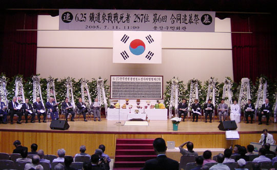 ¶Ç öµµÂüÀü Àü»çÀÚ 287À§ È£±¹¿µ·ÉµéÀÇ ¸í¿¹¸¦ ¼±¾çÇÏ°í ±× ¼øÀýÇÑ ¶æÀ» ±â¸®´Â ÇÑÆí À¯Á·µéÀ» À§·ÎÇÏ´Â ÇÕµ¿Ã߸ðÁ¦¸¦ 2000³â 7¿ù 11ÀÏ ¸Å³â °ÅÇàÇϰí Àִµ¥ ÀÌ´Â Áö³ 50³â 6¡¤25ÀüÀï ¹ß¹ßÀÌÈÄ °°Àº ÇØ 7¿ù 11ÀÏ °¡Àå ¸¹Àº 54¸íÀÌ Çѳ¯ Àü»çÇÑ ³¯À» ±â¸®±â À§ÇÔÀÌ´Ù.(Konas)