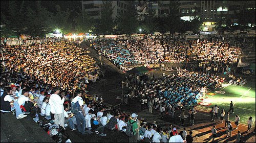 ÅëÀÏ¿¬´ë, ¹ÎÁß¿¬´ë, ÇÑÃÑ·Ã ¼Ò¼Ó ȸ¿ø 1¸¸ 5õ¿© ¸íÀº 14ÀÏ ¹ã 12½Ã °æÈñ´ë ³ëõ±ØÀå¿¡¼ ÁÖÇѹ̱ºÃ¶¼ö¿Í ¿¬¹æÁ¦ ÅëÀÏÀ» °ñÀÚ·Î ÇÑ 'ÀÚÁÖÆòÈÅëÀÏÀ» À§ÇÑ °áÀÇÀÇ ¹ã'Áýȸ¸¦ °¡Á³´Ù.