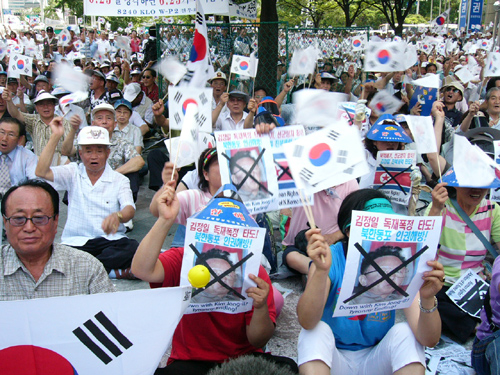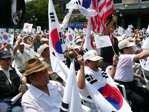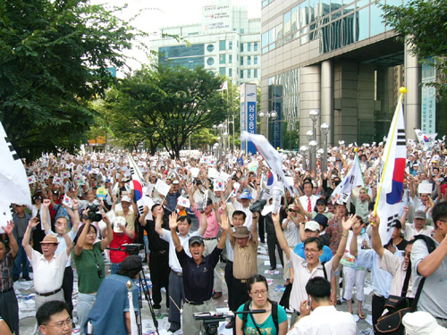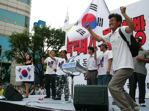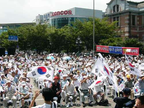 Áýȸ Âü°¡ÀÚµéÀº ÇöÀç ¼¿ï½Ã³» °÷°÷¿¡¼ ÁøÇàµÇ°í ÀÖ´Â ¡®8.15 ³²ºÏ°øµ¿Çà»ç¡¯¿¡¼ űرâ¿Í ´ëÇѹα¹ ±¹È£°¡ »ç¶óÁø Çö½ÇÀ» °³ÅºÇϸç, ±× ¾î´À ¶§º¸´Ùµµ ÈûÂ÷°Ô űر⸦ Èçµé°í ¸ñ ³õ¾Æ ¡°´ëÇѹα¹¡±À» ¿ÜÃÆ´Ù.