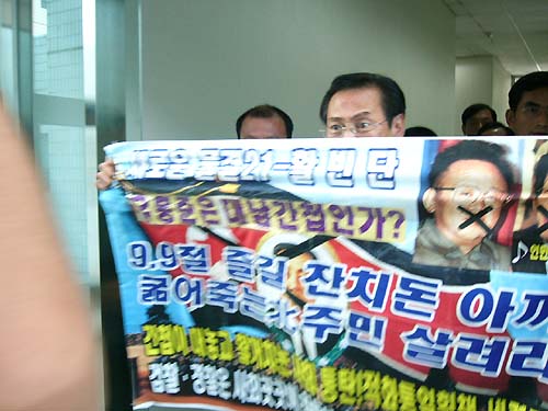 ¶Ç, ´Ù¸¥ ȸ¿øÀº "±× ³ë·¡ ¾îµð¼ ¾Ë¾Ò´Â°¡. ¾î¶² ¶æÀ» ´ã°í ÀÖ´ÂÁö³ª ¾Æ´Â°¡"¶ó°í µûÁ® ¹°¾ú°í, À¯ ûÀåÀº "°Å±â ¾È³»¿ø¿¡°Ô ¹è¿ü´Ù"°í ª°Ô ´äÇß´Ù. ÀÌ ÀÚ¸®¿¡ ÀÖ´ø Ȱºó´Ü È«Á¤½Ä ´ÜÀåµµ ÁغñÇÑ Ç÷¡Ä«µå¸¦ µé°í, "À¯È«ÁØÀº ´ë³²°£Ã¸Àΰ¡. ±èÁ¤ÀÏÀÇ ÇϼöÀÎÀº Áï°¢ »çÅðÇ϶ó"°í ¼Ò¸®Ä¡¸ç Ç×ÀÇÇß´Ù. ÀÌ¿¡ À¯ ûÀåÀº ´çȤ½º·¯¿î µí ºü¸¥ °ÉÀ½À¸·Î Ȳ±ÞÈ÷ º´¿øÀ» ºüÁ®³ª°¬´Ù.