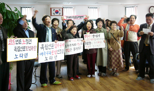ÀÌ °°Àº ¼Ò½ÄÀÌ ¾Ë·ÁÁöÀÚ ¼¼®±¸ º¯È£»ç¸¦ ºñ·ÔÇØ ³ª¶ó»ç¶û¾î¸Ó´Ï¿¬ÇÕ, ³ª¶ó»ç¶û½Ã¹Î¿¬´ë, ÀÚÀ¯¼öÈ£±¹¹Î¿îµ¿, Ȱºó´Ü µî ÀÚÀ¯¿ìÀÍ ½Ã¹Î´Üü ȸ¿ø 30¿©¸íÀº "¾ð·Ðź¾ÐÀ» ÁßÁöÇ϶ó"¸ç À̳¯ ¿ÀÀüºÎÅÍ µ¶¸³½Å¹® »ç¹«½Ç¿¡¼ ÁøÀ» Ä¡¸ç '¾Ð¼ö¼ö»ö ±Ôź ±âÀÚȸ°ß'À» °³ÃÖÇß´Ù.