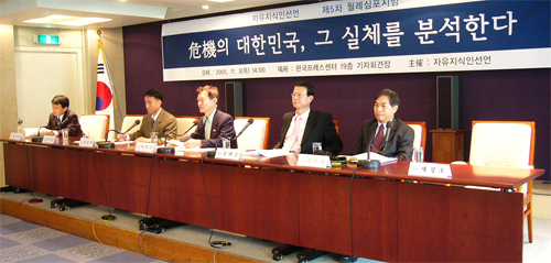 ù ¹øÂ° ¹ßÁ¦¸¦ ¸ÃÀº È«°üÈñ ¾Èº¸Àü·«¿¬±¸¼ÒÀåÀº ¡®³ë¹«Çö Á¤±ÇÀÇ ½Çü¸¦ ¹·´Â´Ù¡¯¶ó´Â ÁÖÁ¦¸¦ ÅëÇØ ¡°ÇöÀç ´ëÇѹα¹Àº ¡®±¹°¡ÆÄ±« À§Çù¡¯ÀÇ Áß´ëÇÑ À§±â¿¡ Á÷¸éÇØ Àִµ¥, ±× À§±âÀÇ ³»¿ëÀº ù°, ÀÚÀ¯¹ÎÁÖüÁ¦¿¡ ´ëÇÑ À§ÇùÀ̸ç, µÑ°, 1948³â °Ç±¹µÈ ÇѹݵµÀÇ ¡®À¯ÀÏ ÇÕ¹ýÁ¤ºÎ¡¯·Î¼ÀÇ ´ëÇѹα¹ ±¹Ã¼¿Í Á¤Å뼺¿¡ ´ëÇÑ À§Çù¡±À̶ó°í ºÐ¼®Çß´Ù. ±×´Â ÀÌ·± À§±âÀÇ ¿øÀÎÀ» ¡ãÀÚÀ¯Ã¼Á¦ÀÇ ºÎÁ¤ ¡ã´ëÇѹα¹ Á¤Å뼺 ºÎÁ¤ ¡ã¼¼°è»çÀû È帧°ú Á¤¹Ý´ëµÇ´Â Ä£ºÏ¡¤ÁÂÀÍ °ð öѱèÁ¤ÀÏ ³ë¼±ÀÇ ºÎ»óÇØ ¼¼·Â È®´ë°¡ ÀÌ·ïÁö°í Àֱ⠶§¹®À̶ó°í ÁöÀûÇß´Ù.