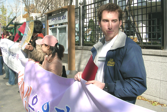 ºÏÇÑÀαǰ³¼±À» À§ÇØ È°µ¿ÇÏ´Â Ú¸ñ½ ´ëÇлý¿¬ÇÕ´ÜüÀÎ 'LiNK'(Liberation in North Korea) ¼Ò¼ÓÀÇ ¾Öµå¸®¾ð È« ¾¾(Çѱ¹¸í È«À¸¶ä)´Â "¹Ì±¹¿¡¼µµ ºÏÇÑÀ뱂 ¹®Á¦°¡ Áß¿äÇÑ À̽´·Î ºÎ»óÇϰí Àִµ¥ Çѱ¹ Á¤Ä¡ÀεéÀº ÇѰᰰÀÌ Æòȸ¦ À§ÇØ Àαǹ®Á¦´Â ÅëÀÏÀÌ µÈ ´ÙÀ½ »ý°¢ÇؾßÇÑ´Ù"°í ¸»ÇÑ´Ù¸ç "³²ºÏ °£ Çù·ÂÀº ±èÁ¤ÀÏÀ» À§ÇÑ °ÍÀÌ ¾Æ´Ï¶ó ±¾ÁÖ¸° ºÏÇÑ µ¿Æ÷µéÀ» À§ÇØ ÇÏ´Â °ÍÀ¸·Î À뱂 ¹®Á¦¿¡ ´ëÇØ Á¤ºÎ°¡ ħ¹¬ÇÏ´Â °ÍÀº º»¸»ÀÌ ÀüµµµÈ ÇàÀ§"¶ó°í ºñÆÇÇß´Ù.