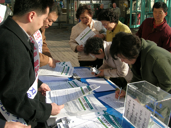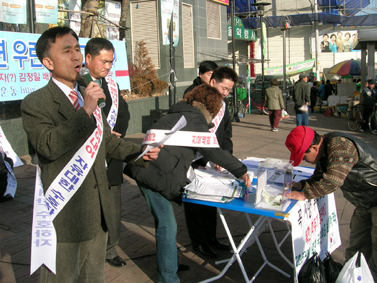 ¡®³ª¶ó»ç¶û½Çõ¿îµ¿¡¯(°øµ¿´ëÇ¥ ¼­¼®±¸, È«°üÈñ)µî 25°³ ÀÚÀ¯Áø¿µ ´ÜüµéÀÌ ¼­¿ï¡¤°æ±â ÀÏ¿øÀ» ¼øÈ¸ÇÏ¸ç ¹úÀÌ´Â ¡®¼Ò(á³)¿¬¼³¡¯ °¡µÎ(ʶÔé) Áýȸ°¡ ½Ã°£ÀÌ È帧¿¡ µû¶ó ¸¹Àº ½Ã¹Îµé·ÎºÎÅÍ È£ÀÀÀ» ¾ò°í ÀÖ´Ù.