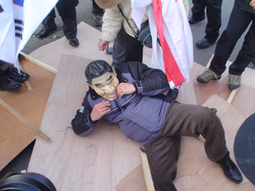 À̾î ȸ¿øµéÀº "±èÁ¤ÀÏ µ¶ÀçüÁ¦ ŸµµÇÏ¿© ºÏÇѵ¿Æ÷ ±¸ÃâÇÏÀÚ" "ºÏÇÑ ÀÎ±Ç Ä§¹¬ÇÏ´Â ³ë¹«Çö Á¤±Ç ¹°·¯°¡¶ó" "ÆÛÁÖ±â½Ä ´ëºÏ Á¤Ã¥ Áï°¢ Áß´ÜÇ϶ó" µî ±¸È£¸¦ ¿ÜÃÆ´Ù.