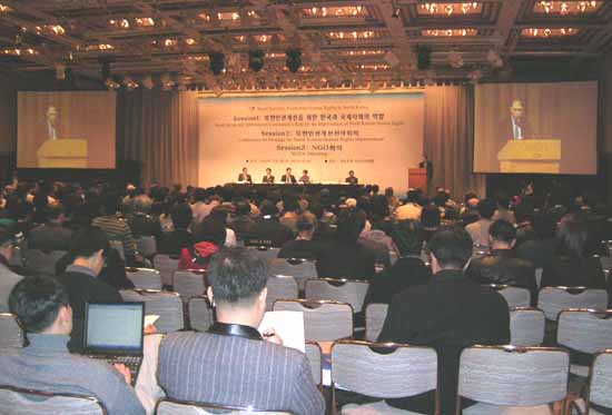 °øµ¿´ëȸÀåÀÎ ÀÌÀÎÈ£ ¸íÁö´ë ¼®Á±³¼öÀÇ »çȸ·Î ÁøÇàµÈ À̳¯ ȸÀÇ´Â 1¼¼¼Ç 'ºÏÇÑÀαǰ³¼±À» À§ÇÑ Çѱ¹°ú ±¹Á¦»çȸÀÇ ¿ªÇÒ', '2¼¼¼Ç ºÏÇÑÀαǰ³¼±Àü·«È¸ÀÇ', 3¼¼¼Ç 'NGOȸÀÇ' µîÀÇ ¼ø¼·Î ÁøÇàµÆ´Ù. 1¼¼¼Ç ±âÁ¶¿¬¼³¿¡ ³ª¼± ¾Ë·º»ê´õ ¹ö½Ã¹Ù¿ì ÁÖÇÑ Ú¸ ´ë»ç´Â "¹Ì±¹ Á¤ºÎ´Â ºÏÇÑÀαǰ³¼±À» À§ÇØ Àû±ØÀûÀ¸·Î ³ª¼³ °ÍÀÓ"À» õ¸íÇϰí "ºÏÇÑ Àαǰ³¼±À» À§ÇØ ùÛÚ¸°£ Çù·ÂÇÏÀÚ"°í Ã˱¸Çß´Ù.