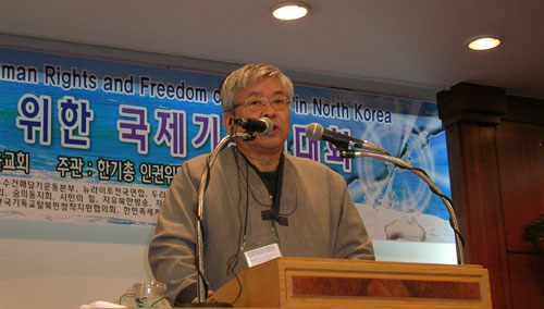 'ºÏÇÑÀαǹ®Á¦¿Í ³²ºÏ°ü°è'¸¦ ÁÖÁ¦·Î À̳¯ ±âÁ¶ ¿¬¼³¿¡ ³ª¼± ¼­°æ¼® ¸ñ»ç(ÇѱâÃÑ ÀαÇÀ§¿øÀå)´Â ÃÖ±Ù Á¤ºÎ°¡ ³²ºÏ±³·ùÇù·Â±â±ÝÀ» ´ëÆø Áõ¾×ÇØ °ø»ç(ÍëÞä)ÀÇ ÇüÅ·Π´ëºÏÁö¿øÈ°µ¿À» ÃßÁøÇÏ·Á´Â °Í¿¡ ´ëÇØ "Çѱ¹Á¤ºÎ´Â ºÏÇÑÀαǹ®Á¦ÀÇ °³¼±ÀÌ ÀÖÁö ¾ÊÀº ÇÑ Ãß°¡Àû Áö¿øÀ» ÇØ¼­´Â ¾È µÈ´Ù"°í ¸ø¹Ú¾Ò´Ù.
