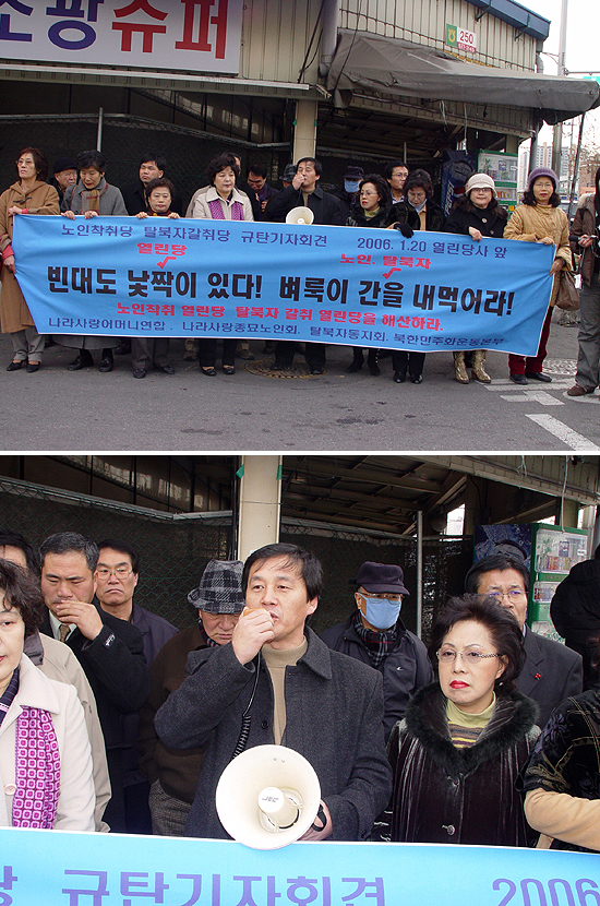 ¿µ¼¼ ³ëÀεé°ú Å»ºÏÀÚµéÀÌ ÀڽŵéÀÇ ±³Åëºñ¿Í »ý°è º¸Á¶ºñ¸¦ ¿­¸°¿ì¸®´ç¿¡¼­ ´çºñ·Î ¸ô·¡ »©³»°£ °Í¿¡ ºÐ°³ÇØ À̸¦ ±ÔźÇÏ´Â ±âÀÚȸ°ßÀ» 20ÀÏ Á¤¿À ¿­¸°¿ì¸®´ç ´ç»ç ¾Õ¿¡¼­ °³ÃÖÇß´Ù.