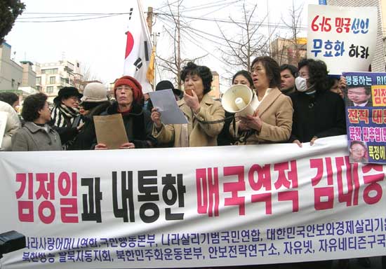 ³ª¶ó»ç¶û¾î¸Ó´Ï¿¬ÇÕ, ÀÚÀ¯³Ý, ±¸±¹ÅõÀïÀ§¿øÈ¸, ÇØ±ºµ¿Áöȸµî ÀÚÀ¯Áø¿µ ½Ã¹Î´Üü ȸ¿ø 100¿©¸íÀº 25ÀÏ ¿ÀÈÄ 3½Ã ¼¿ï ¸¶Æ÷±¸ µ¿±³µ¿¿¡ À§Ä¡ÇÑ <±è´ëÁß µµ¼°ü>¾Õ¿¡¼ ÃÖ±Ù ¼öÂ÷·Ê ¹æºÏ Àǻ縦 ŸÁøÇØ ¹°ÀǸ¦ ºúÀº ±è´ëÁß îñ ´ëÅë·ÉÀ» ±ÔźÇÏ´Â ±ä±Þ±âÀÚȸ°ßÀ» °¡Á³´Ù.