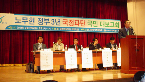 ´º¶óÀÌÆ®Àü±¹¿¬ÇÕ ÈÄ¿øÀ¸·Î '³ë¹«Çö Á¤ºÎ 3³âÀÇ Æò°¡¿Í Àü¸Á'À» ÁÖÁ¦·Î ¿¸° À̳¯ ¼¼¹Ì³ª¿¡¼ °Àå¼® Çѱ¹±³¿ø´ë ±³¼ö´Â "³ë¹«ÇöÁ¤ºÎ´Â Áý±Ç ÃʱâºÎÅÍ ±¹¹ÎÀÇ ¹Ý¹ÌÁ¤¼ µî¿¡ Æí½Â, Áö³ªÄ¡°Ô ´ëºÏ ÆíÁßÀûÀÎ Á¤Ã¥¿¡ ÁýÂøÇß´Ù"°í ÆòÇß´Ù.