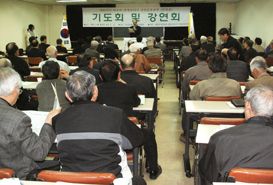 ÀÌ ³¯ °­¿¬Àå¿¡´Â ä¸í½Å À屺À» ºñ·ÔÇÑ ¾È°æº» ´ëÇ¥¿Í ¸ñȸÀÚ, ¸¹Àº ¿ø·ÎµéÀÌ Âü¼®ÇØ ½Ã±¹À» °ÆÁ¤Çϸç ÇÑ ¸ñ¼Ò¸®·Î ÁÂÆÄ¼¼·Â Ÿµµ¸¦ ¿ÜÄ¡±âµµ Çß´Ù.(konas)